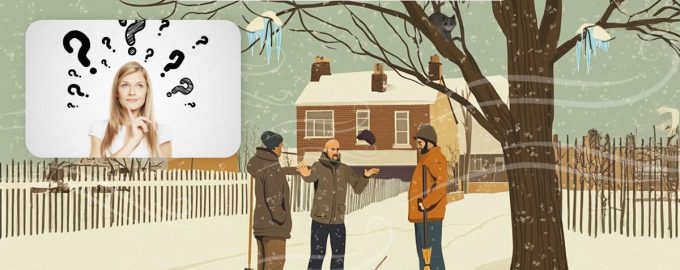 Na sliki vidite tri brisalce, ki so se pozimi zbrali na dvorišču pod drevesom in se pogovarjali. Nobeden od sogovornikov ni niti opazil, da je eden od njih v resni nevarnosti.