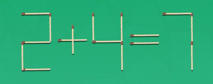 Na prvi pogled je ta uganka z vžigalicami zelo preprosta, vendar je ne podcenjujte. Da bi našli pravo rešitev, boste potrebovali pozornost, logično razmišljanje in sposobnost opazovanja podrobnosti. Napačno matematično enakost 2 + 4 = 7, sestavljeno iz 16 vžigalic, morate popraviti tako, da premaknete eno od njih.