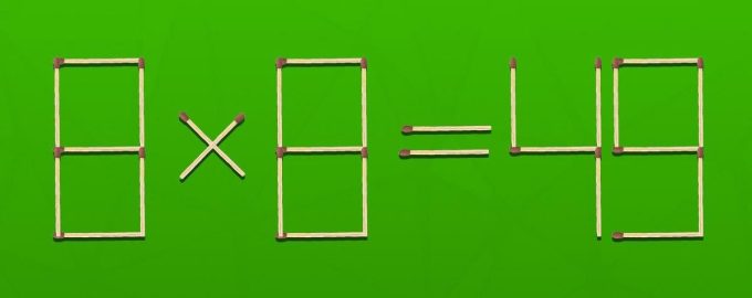 Spodaj si oglejte sliko, na kateri so vžigalice razporedile enakost 8×8=49. Očitno je tu napaka, saj bi moral biti zmnožek teh števil enak 64.