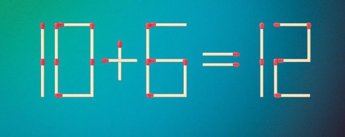 Spodaj si oglejte sliko, na kateri je s pomočjo vžigalic prikazana enakost 10+6=12. Očitno ni matematično pravilna. Morate jo popraviti.