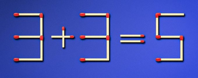 Kako rešiti to uganko? Na številki 3 morate premakniti eno uganko, da se bo spremenila v številko 2. Tako bo enakost postala pravilna: 2 + 3 = 5.