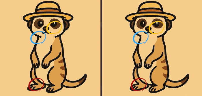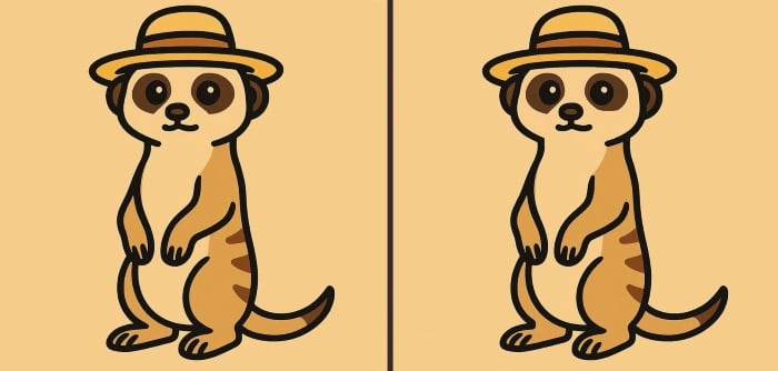 Ste pripravljeni na naslednji izziv? Natančno si oglejte dve sliki surikate, ki nosi klobuk. Morda sta na prvi pogled videti enaki, vendar so med njima tri majhne razlike. Ali mislite, da jih lahko vse najdete v 49 sekundah? Poskusite in preizkusite svojo ostrino vida!