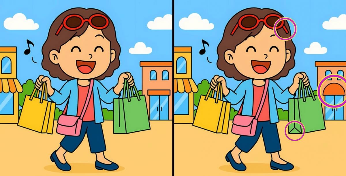 Ste pripravljeni na naslednji izziv? Pozorno si oglejte dve sliki deklice z nakupovalnimi vrečkami. Morda sta na prvi pogled videti enaki, vendar so med njima tri majhne razlike. Ali mislite, da jih lahko vse najdete v 71 sekundah? Poskusite in preizkusite svojo ostrino vida!