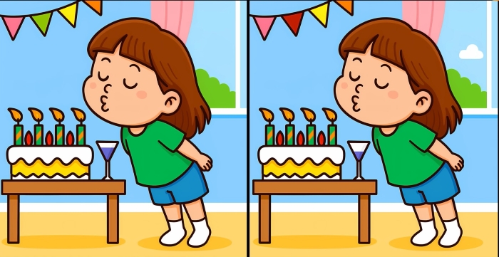 Ste pripravljeni na naslednji izziv? Natančno si oglejte dve sliki deklice, ki piha svečke na torti. Morda sta na prvi pogled videti enaki, vendar so med njima tri majhne razlike. Ali mislite, da jih lahko vse najdete v 31 sekundah? Poskusite in preizkusite svojo ostrino vida!