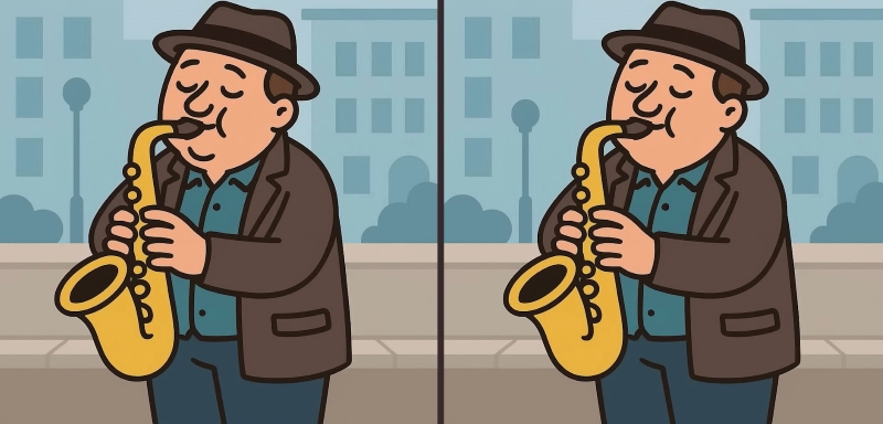 Ste pripravljeni na naslednji izziv? Natančno si oglejte dve sliki moškega, ki igra saksofon. Na prvi pogled sta videti enaki, vendar obstajajo tri majhne razlike. Misliš, da jih lahko vse najdeš v 31 sekundah? Poskusite in preverite svojo ostrino vida!