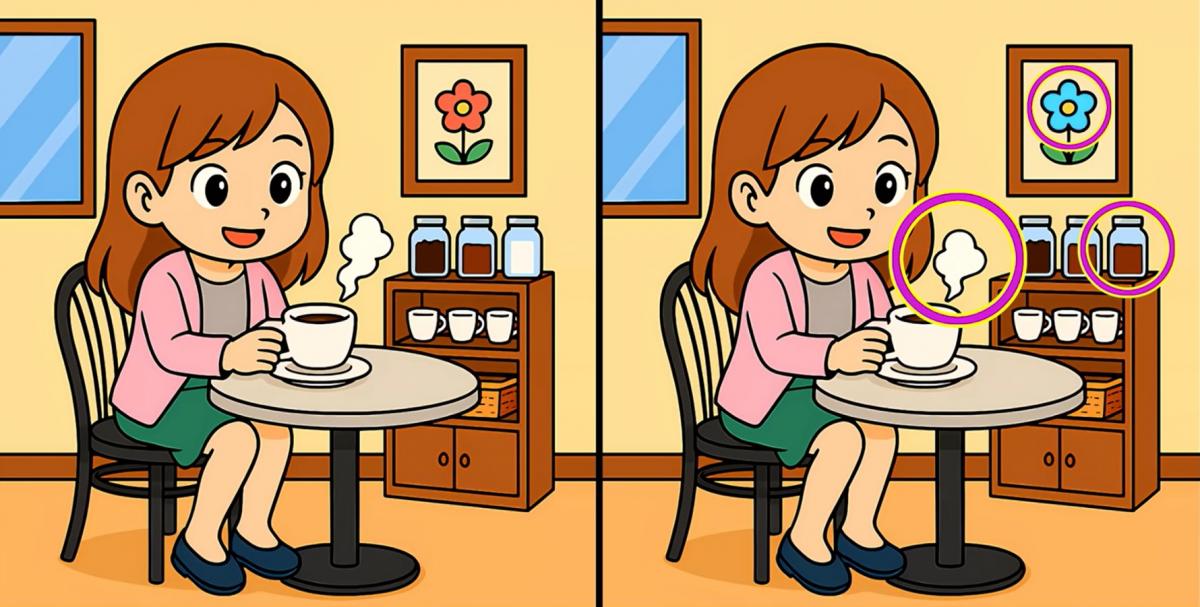 Ste pripravljeni na naslednjo nalogo? Natančno si oglejte dve sliki dekleta, ki pije kavo. Morda sta na prvi pogled videti enaki, vendar so med njima tri majhne razlike. Ali mislite, da jih lahko vse najdete v 19 sekundah? Poskusite in preverite svojo ostrino vida!