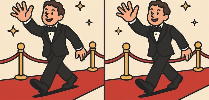 Ste pripravljeni na še en izziv? Natančno si oglejte dve sliki moškega, ki se sprehaja po rdeči preprogi. Na prvi pogled sta sliki morda videti enaki, vendar so med njima tri majhne razlike. Misliš, da jih lahko vse najdeš v 91 sekundah? Poskusite in preizkusite svojo ostrino vida!